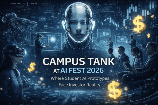 AI Fest 2026 (February 19 to 21) stands out among student innovation festivals and national technology fests because of one focused segment that bridges campus innovation directly to the startup ecosystem India: Campus Tank. This dedicated technology entrepreneurship event and AI startup platform serves as the entrepreneurial core of Chandigarh University AI Fest, turning strong AI powered solutions from the fest's competitive tracks into serious contenders for funding, incubation, and scaling.