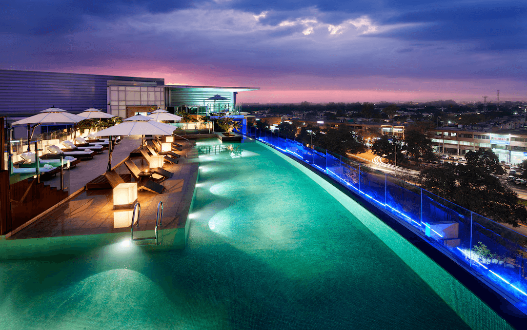 Property Highlights • Quan Spa and 24/7 fitness club • 8,406 sq ft banquet; ballroom up to 1,000 guests • Airport shuttle service • Multiple fine-dining venues • Premium event infrastructure Rooms • Deluxe / Executive / Studio – 484 sq ft • Luxury Suite – 968 sq ft • Presidential Suite – 2,421 sq ft • Marble bathrooms with bathtub & shower • Floor-to-ceiling windows with Wi-Fi Nearby Attractions • ISKCON Temple Chandigarh – 1.3 km • Government Museum and Art Gallery – 5 km • Fun City – 5.6 km Connectivity • Chandigarh Junction Railway Station – 8 km • Chandigarh International Airport – 18.7 km